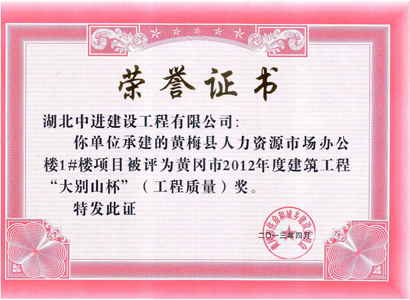 2013年项目工程获奖证书